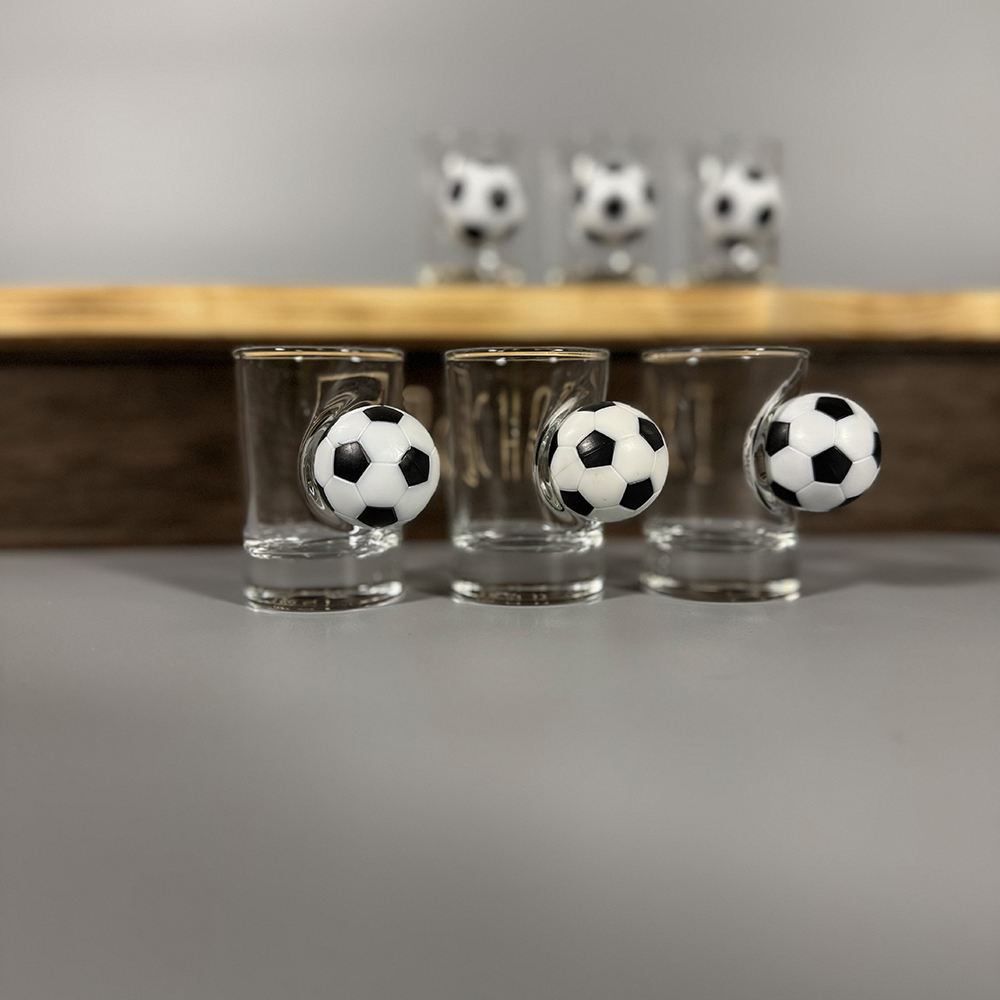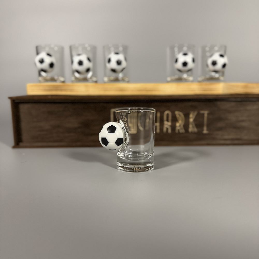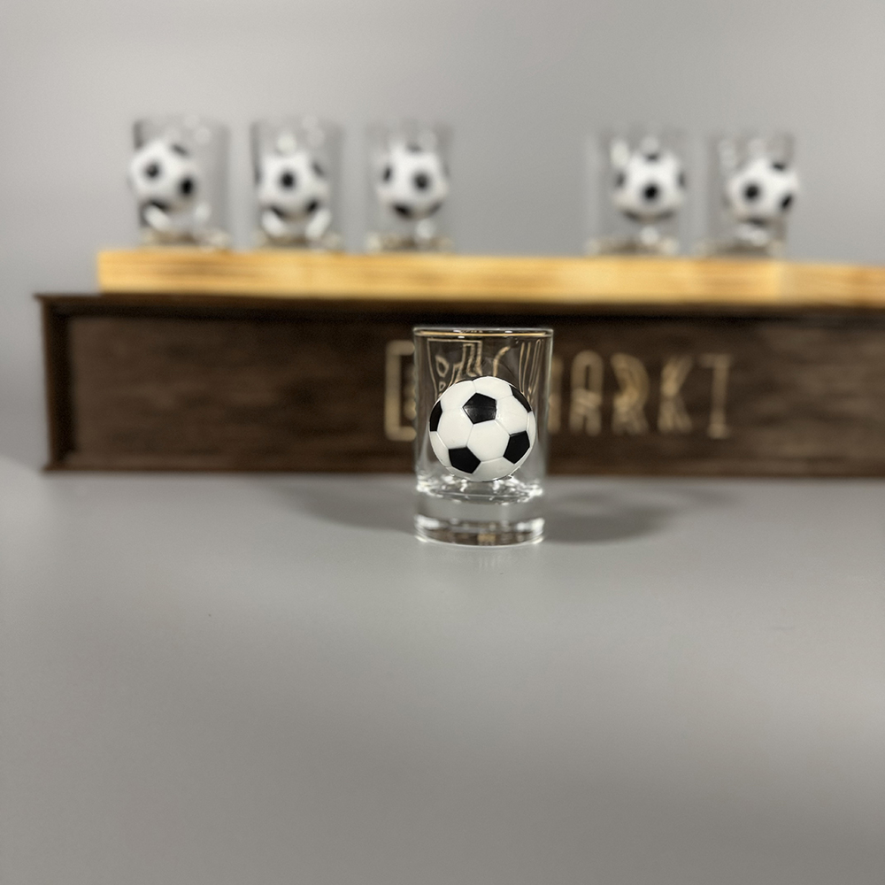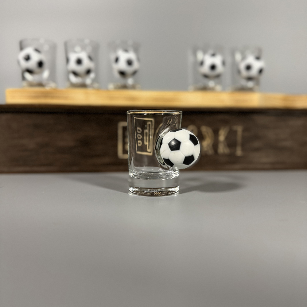Набір чарок із декоративною вставкою у вигляді футбольного м’яча — це оригінальний і стильний подарунок, який оцінять як справжні фанати футболу, так і любителі незвичайного посуду. Кожна чарка поєднує в собі сучасний дизайн, міцні матеріали та яскравий акцент у вигляді мініатюрного футбольного м’ячика, що розміщений всередині. Такий елемент декору додає виробам унікальності та підкреслює їхній характер.