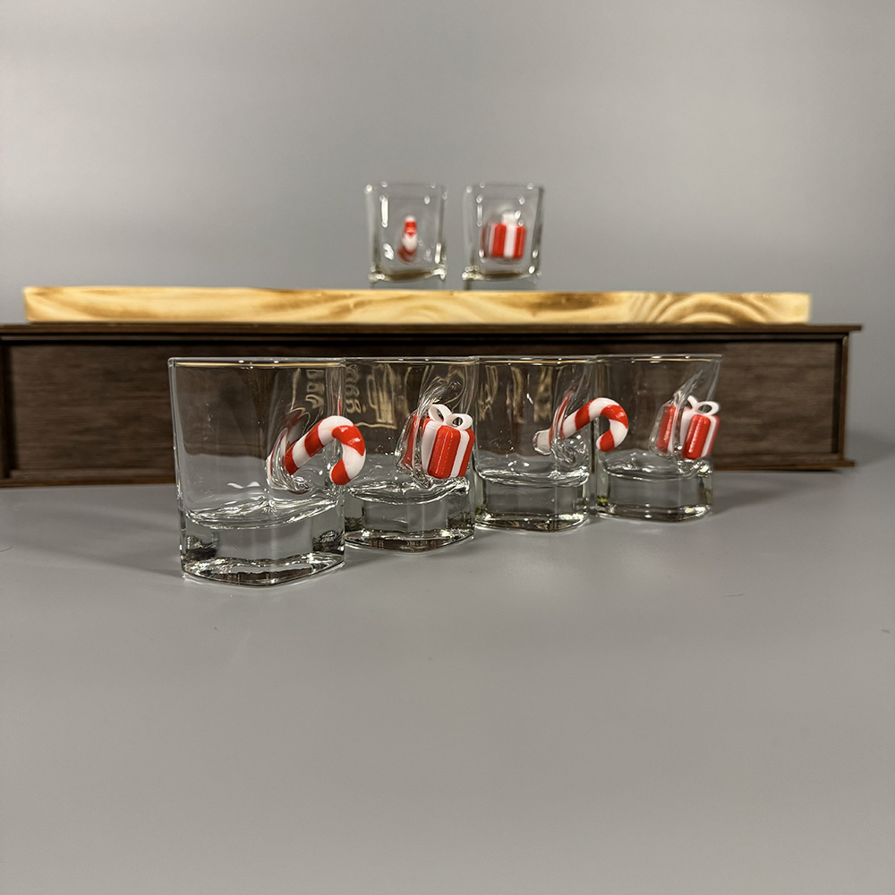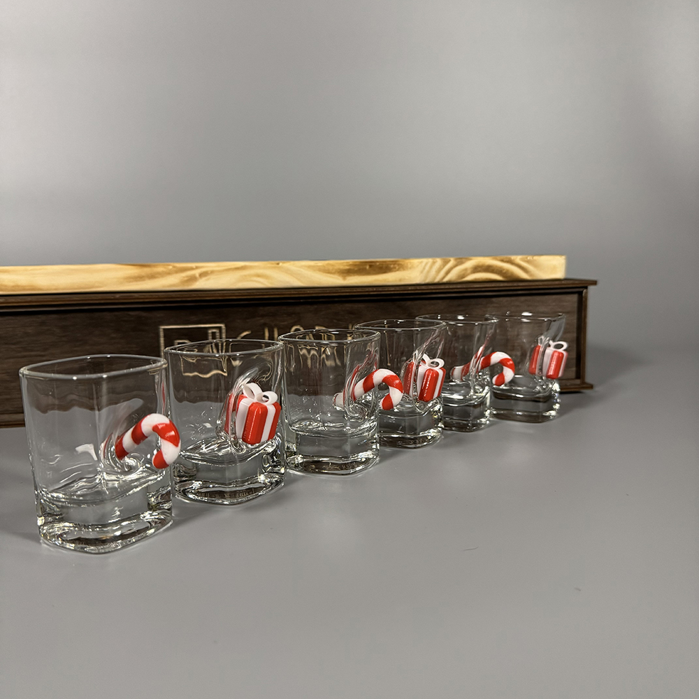 Створіть свій новорічний настрій! Подарунковий набір чарок “Різдвяний” — це поєднання елегантності, ручної роботи та святкового настрою. Усередині кожної чарки розташована яскрава декоративна вставка у формі маленької цукерочки та подаруночка, яка створює відчуття тепла, дитячих спогадів та особливих моментів. Такий набір миттєво привертає увагу та викликає щиру посмішку.
